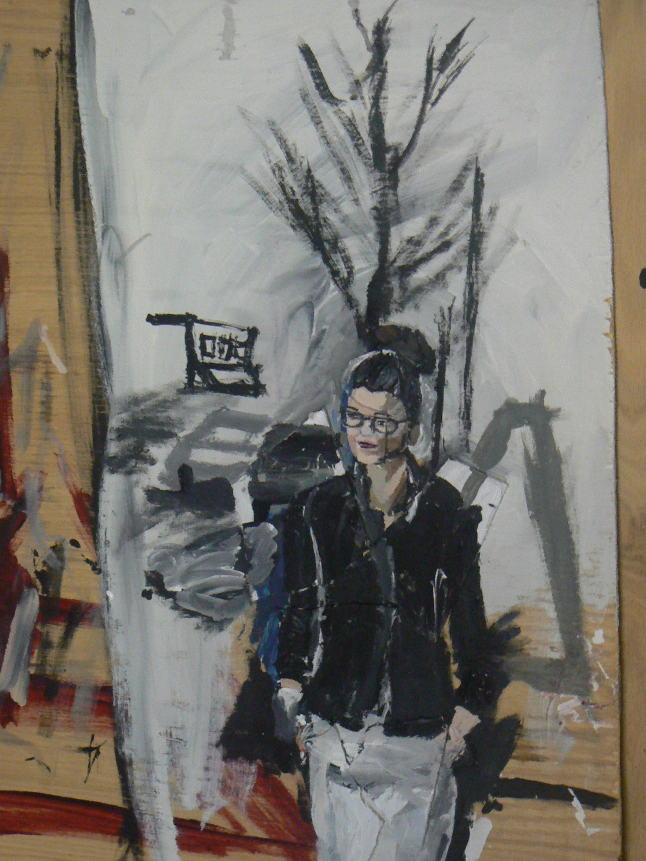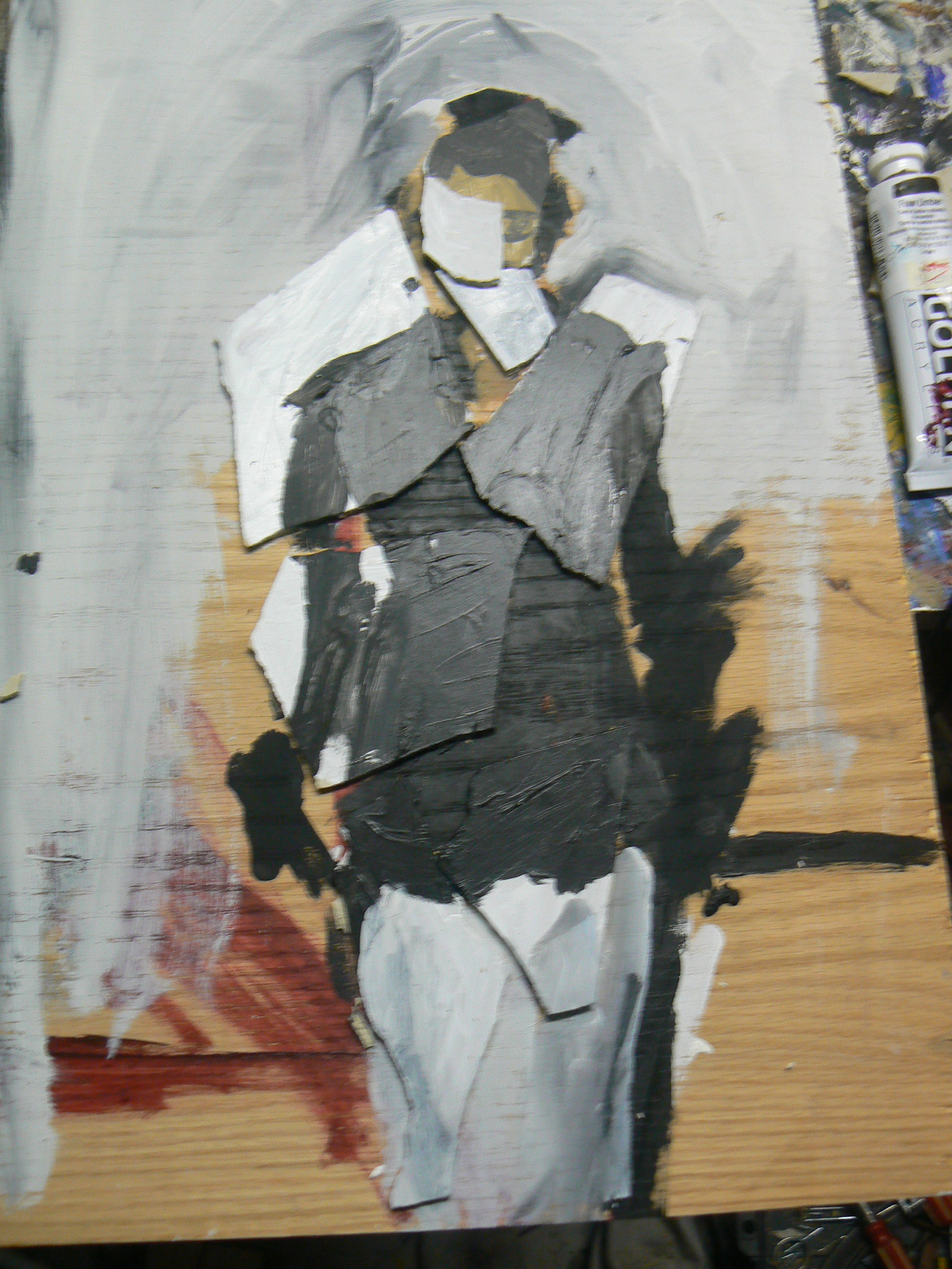Saturday morning. I think these drafts are going pretty well. Interestingly, I found myself more interested by the initial cobbling of weird shapes more interesting visually than where I might be going with the painting now. I’ve included pictures of both where I am now and where I was early on down below.