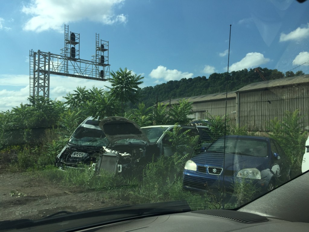 I found the abandoned car wash going on walks before work in the morning. I can’t make a painting of it easily- where’s the focus? But I’ve already incorporated parts of it into the Apocalypse painting I’ve been making.