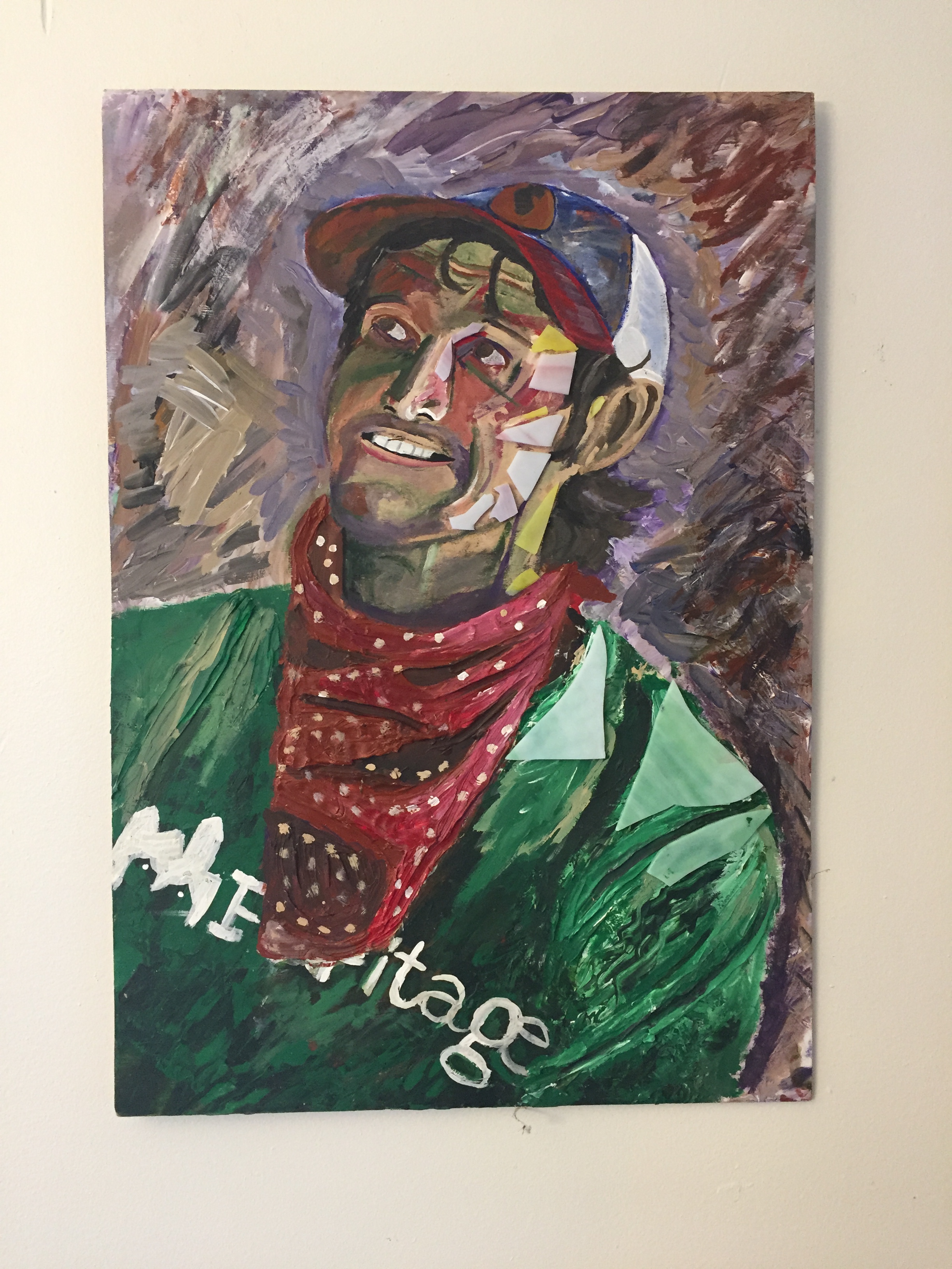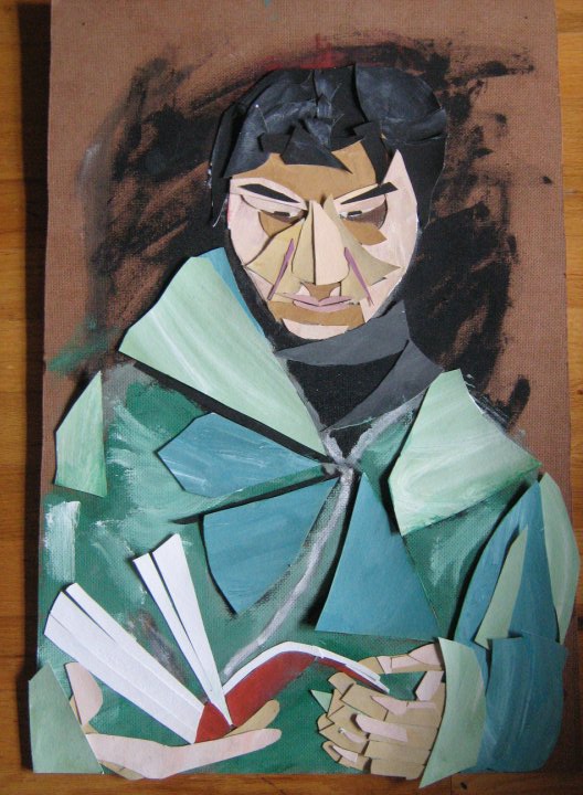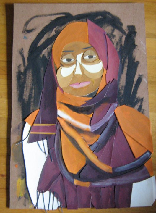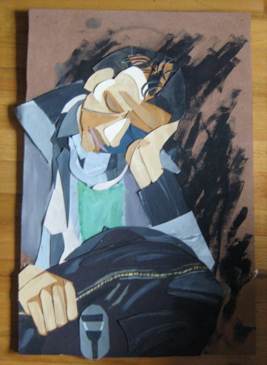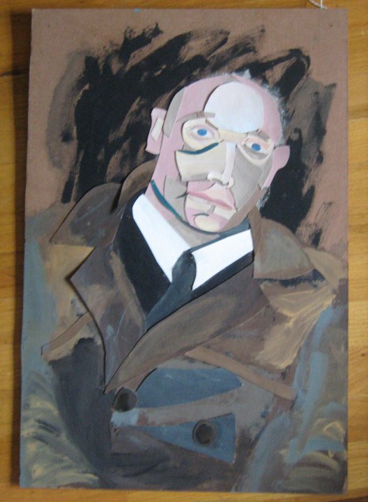 I had to dig the London portrait pictures out from my archives. I can’t believe I’ve never posted about them online. They were the first serious painting series I ever did and the first time I tried to do the human figure in a real way. It was…killer. I would cut all that paper up in my six person college living situation, slowly crafting the paintings together, revising constantly. Making that old woman look like a woman was a sixty hour process maybe. That could be an overestimation, but it might be accurate. I think it took me 11-12 months or more to finish all 8 of the London portraits. When I was finished I couldn’t believe I had made paintings that had worked as well as they did.