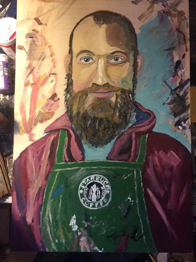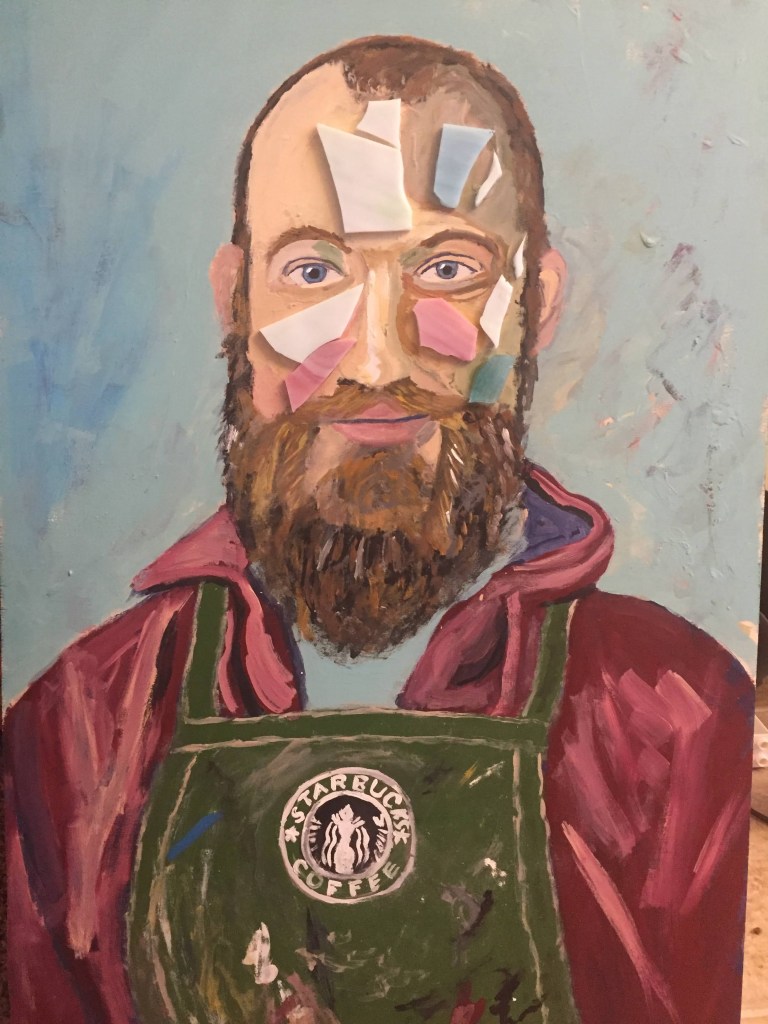 Deciding where the glass goes is getting to be pretty difficult. I would like to do more extravagant portraits. Those are coming. I think up until now I’ve been trying to stick the landing on just…better, more accurate portraits. I’ve been consciously updating the portraits I did ten years ago from London Underground. Same dimensions, same kind of aesthetic- just better. More engaging, more accurate, hopefully more thought provoking. Here are some of the portraits I made then: