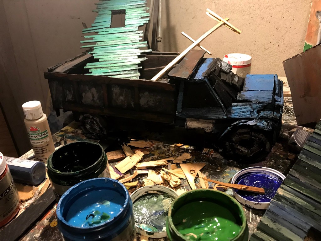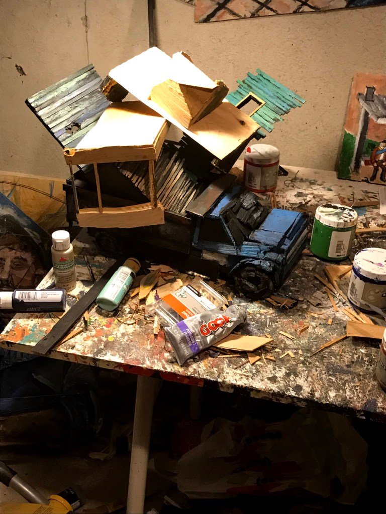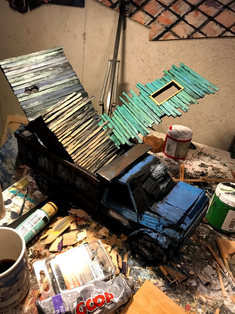 It was a joy to do the last run of this. Painting often feels like a grind, and heaven knows my confidence goes in a circle. When I’m at my low ebb of feeling good about being an artist and you add serious grind, and can lead to a bad time in my basement. Conversely, after doing projects for other people, it felt great to make a crazy sculpture for…I guess myself? Or the world? The world was asking! And I delivered!