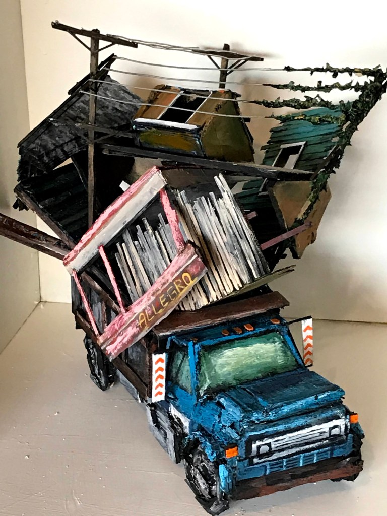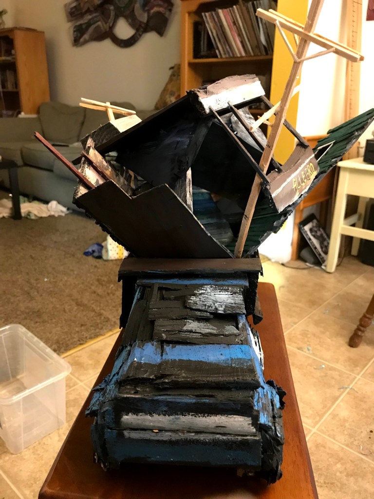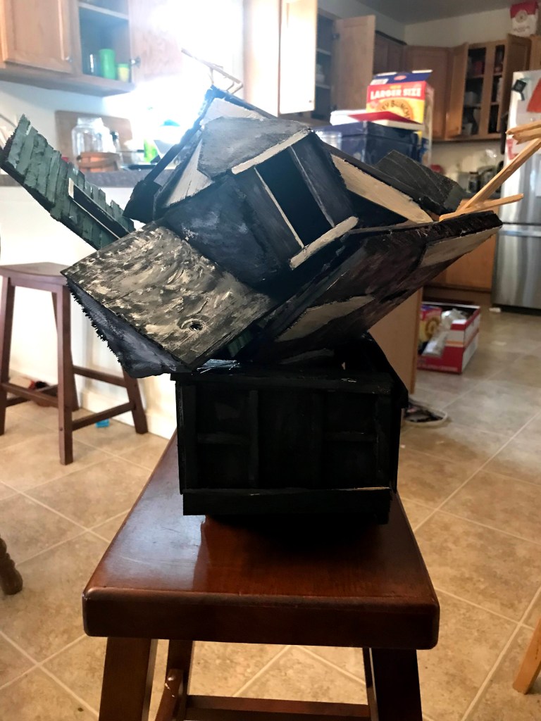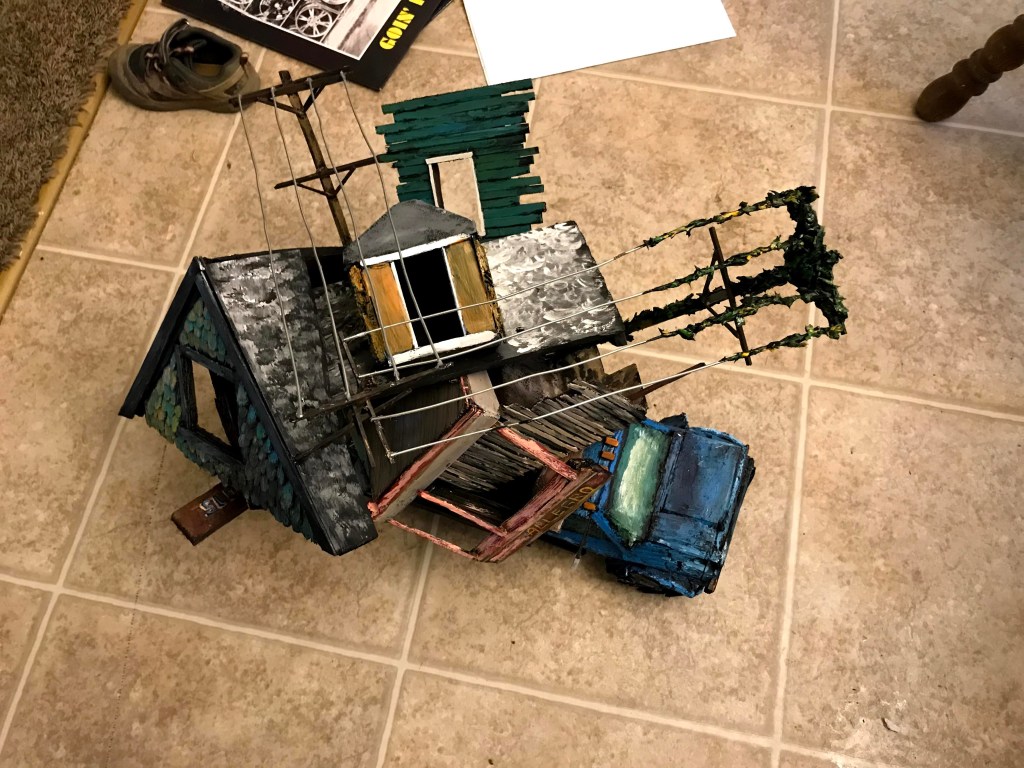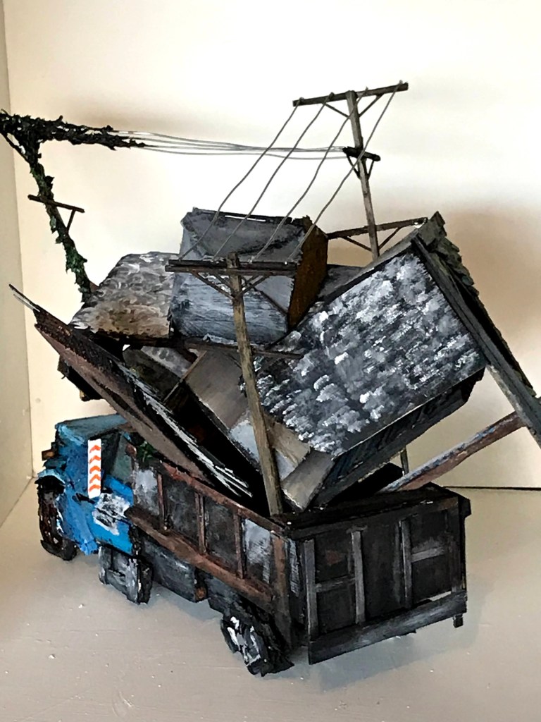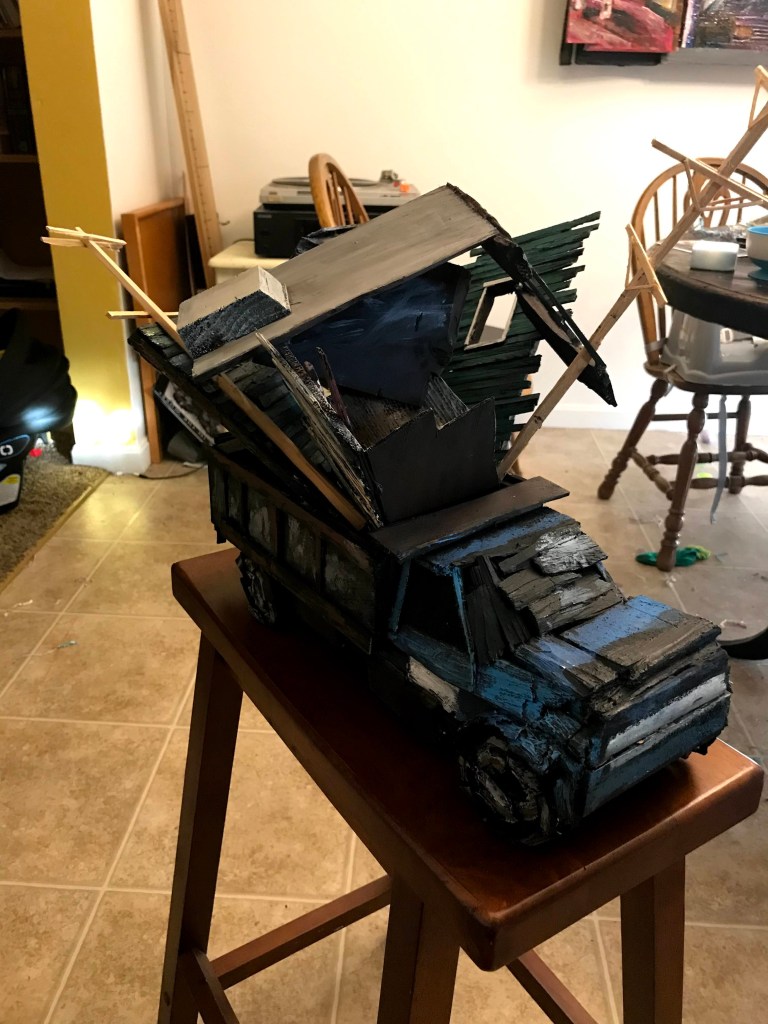 I finally finished my sculpture sequel to my police car- I’m really proud of it. I wanted to make a sculpture that articulated and condensed the overwhelming problem of how to deal with all these blighted houses.
