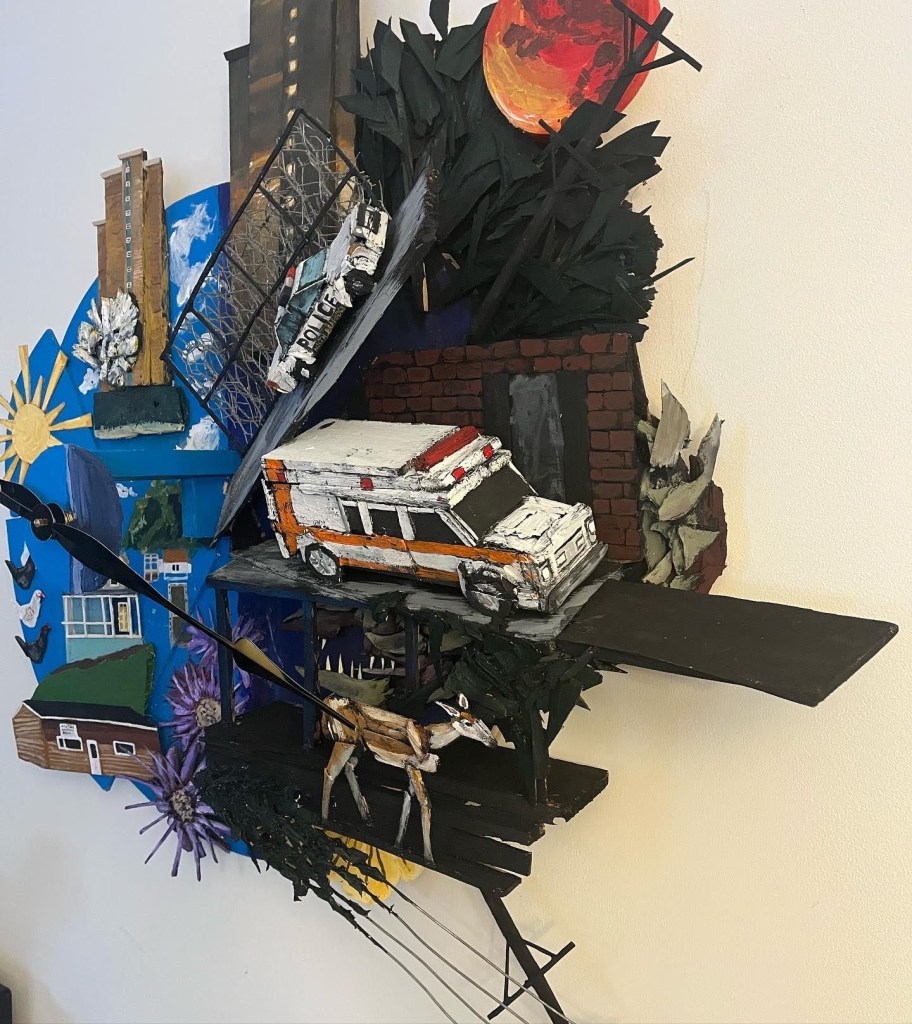 Which things work as synecdoche? How does one construct a microcosm? With this art show, I’ve been moving around a space of symbolism. I’ve joked (was it a joke?) that I’ve been trying to make the North Braddock Extended Cinematic Universe with my paintings. I’ve taken that sort of seriously, and I’ve been drifting into paintings like the clock where I am trying to evoke the feeling of the neighborhood with little parts of it. What I’m hoping is that even if people don’t know the specifics of the geography, they’ll be able to feel the intent.