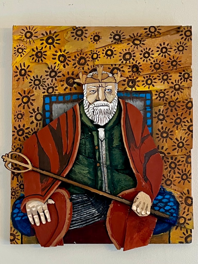 I depicted him as Henry II of England (which, is a little dicey given that Carnegie was Scottish). Henry the II was violent and effective and really locked in his legacy and progeny. The motif in the background is an update of stuff I saw in the artwork from the 12th century (been a minute- might have been a different century. Been crate digging in Medieval art and I’m losing track).